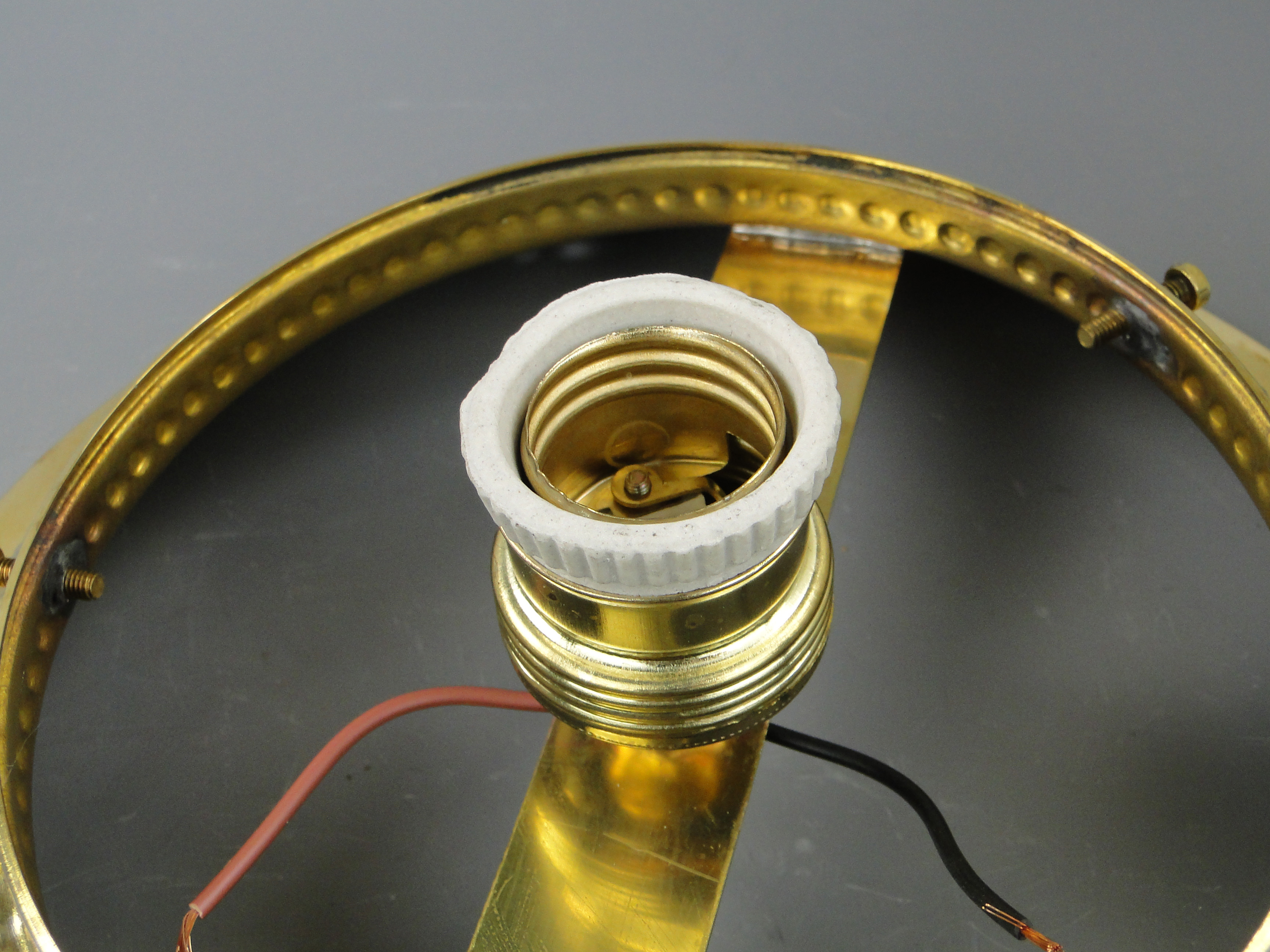 Oprawka mosiężna, do której pasują żarówki na gwint E27.