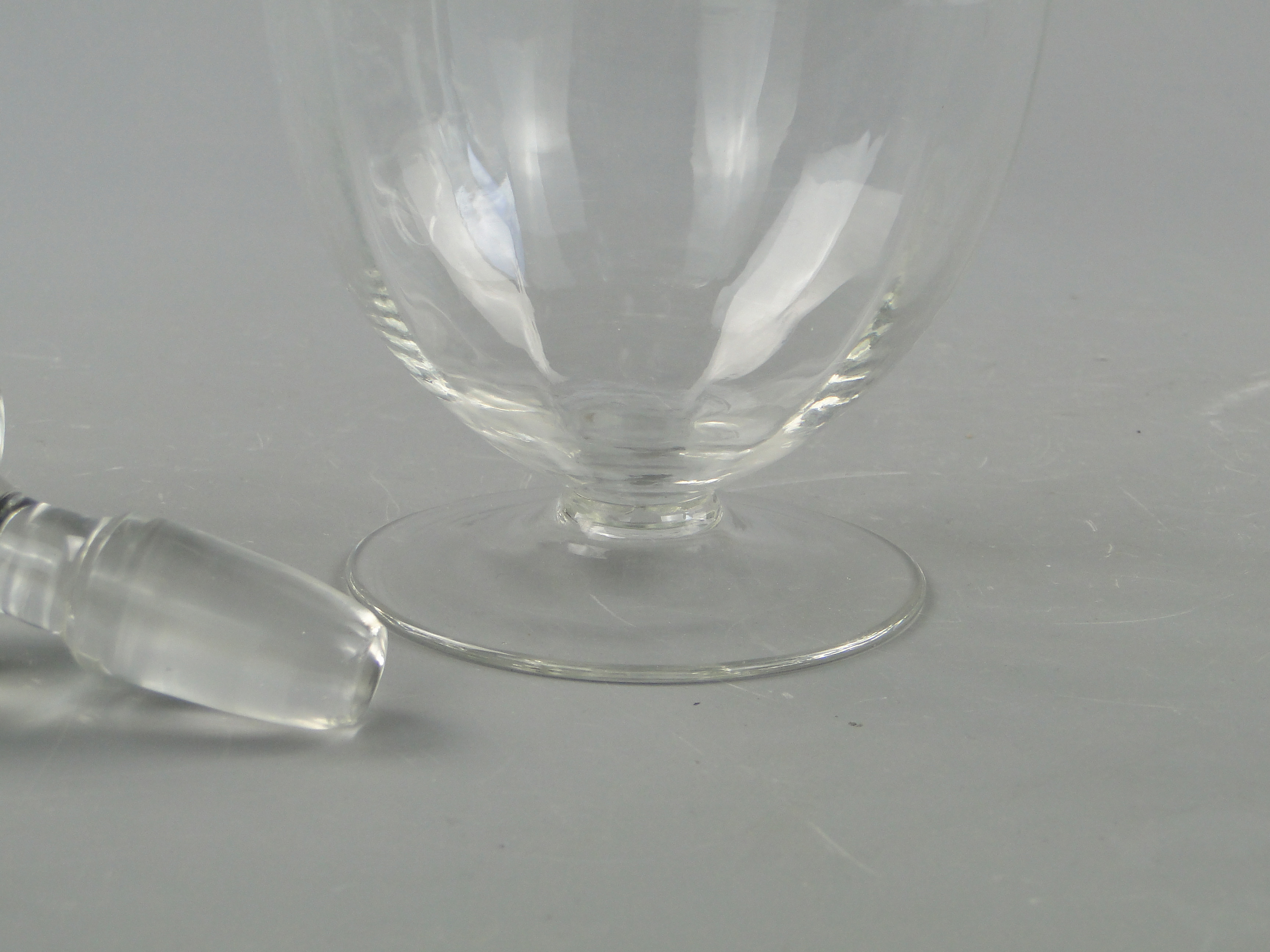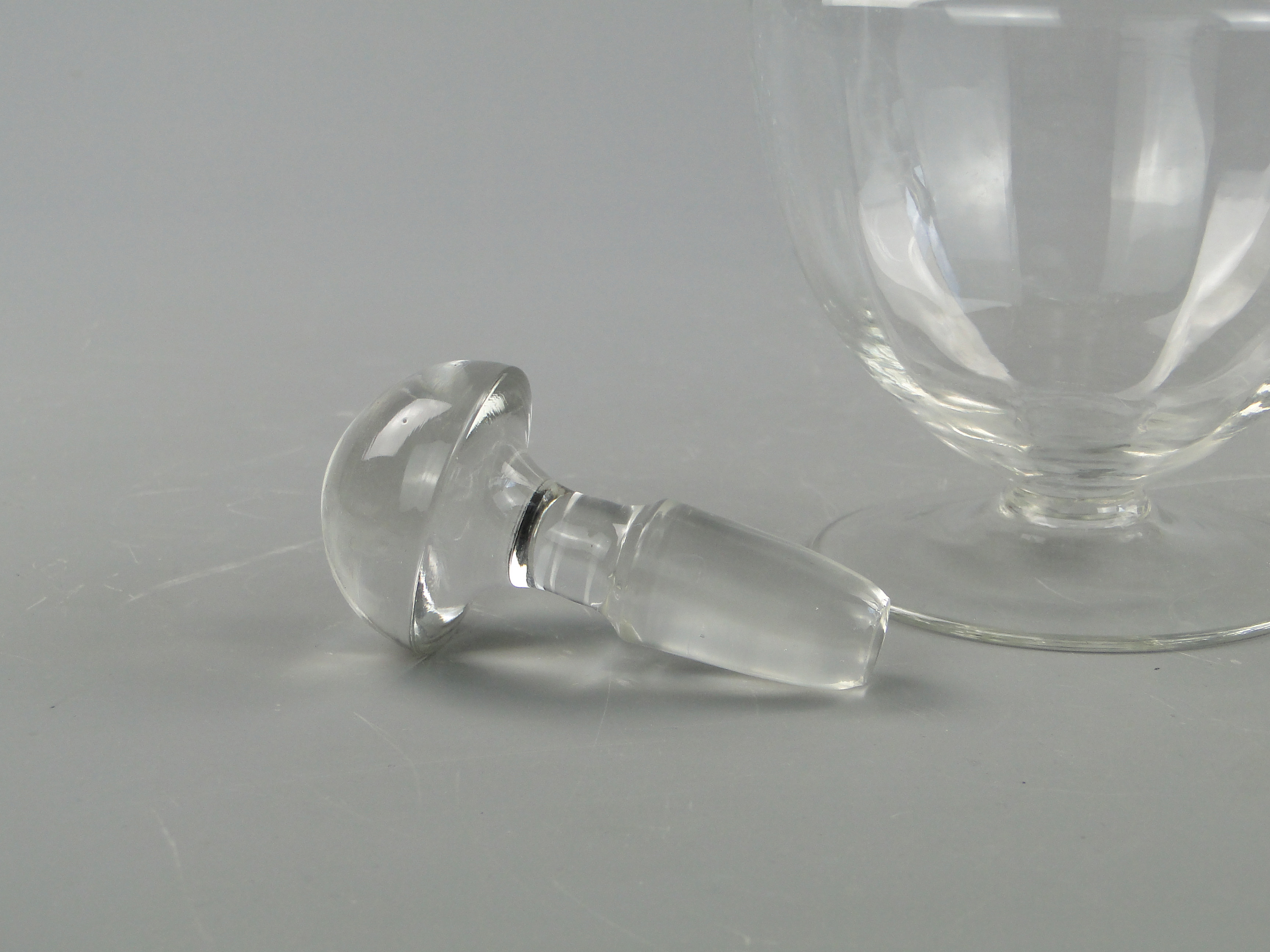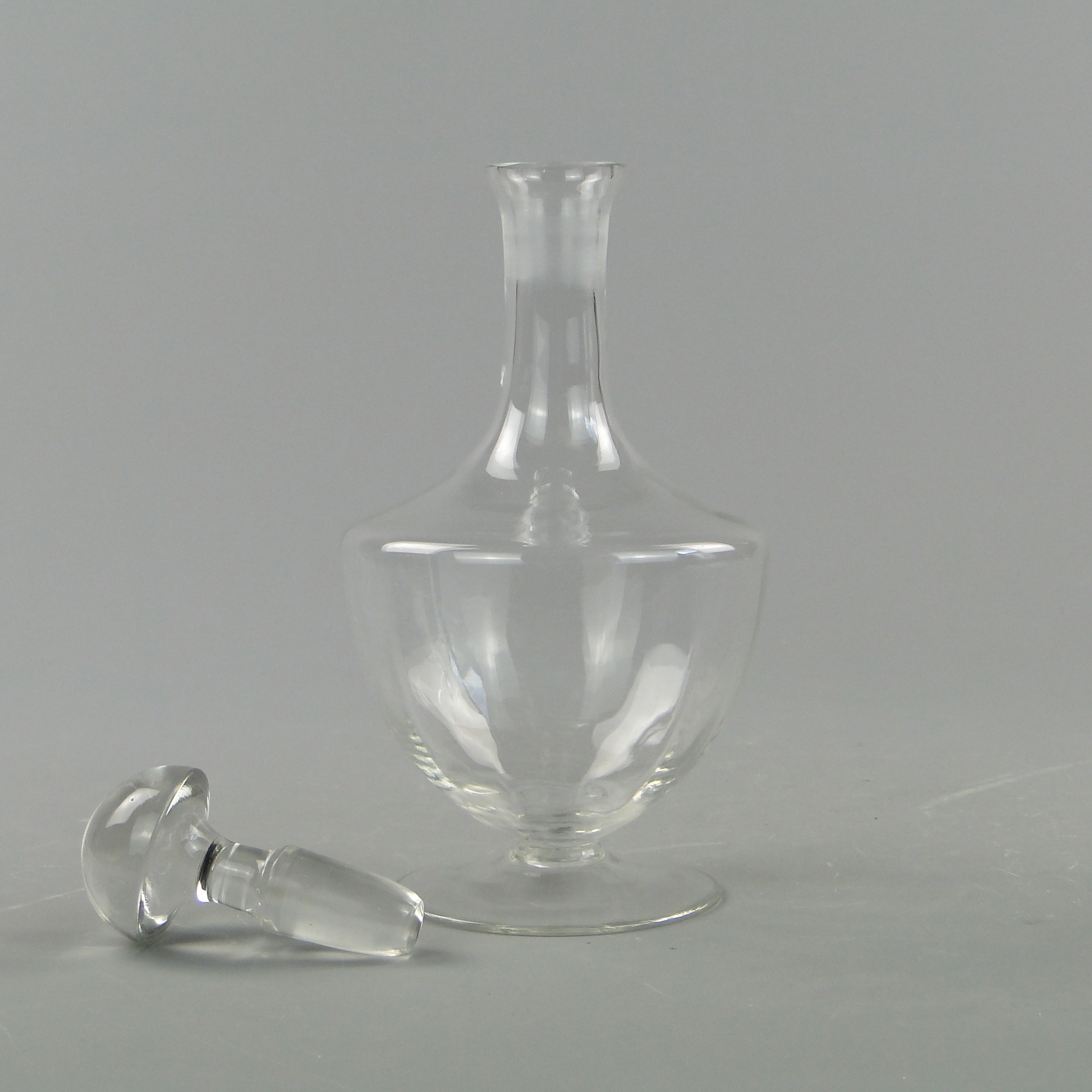 Karafka wspiera się na stopce i zamykana jest korkiem.