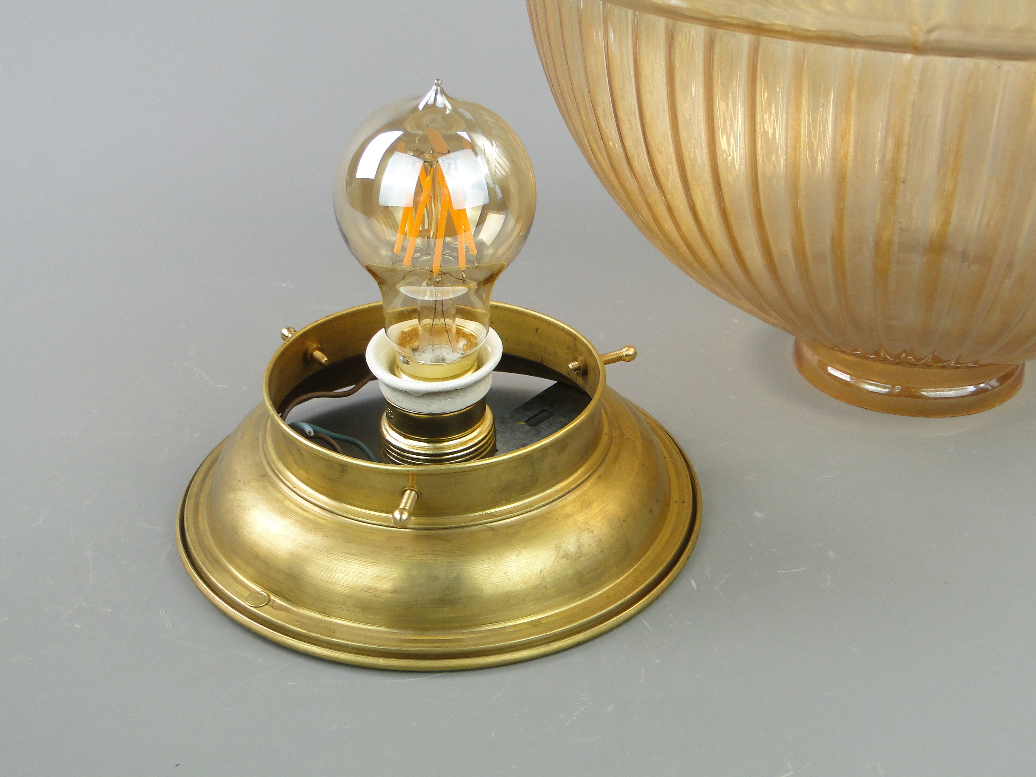 Oprawka mosiężna, do której pasują żarówki na gwint E27.