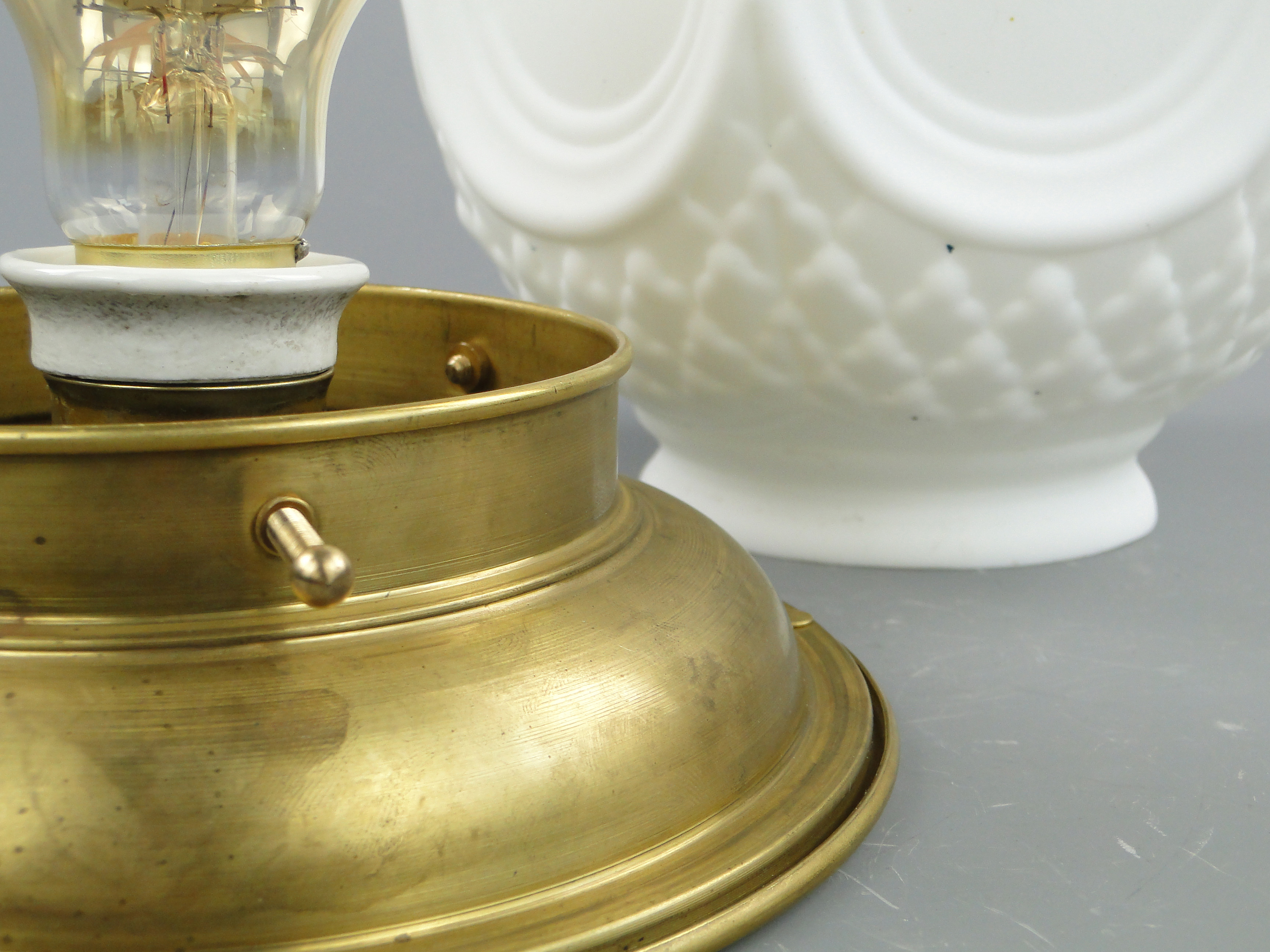 Oprawka mosiężna, do której pasują żarówki na gwint E27.