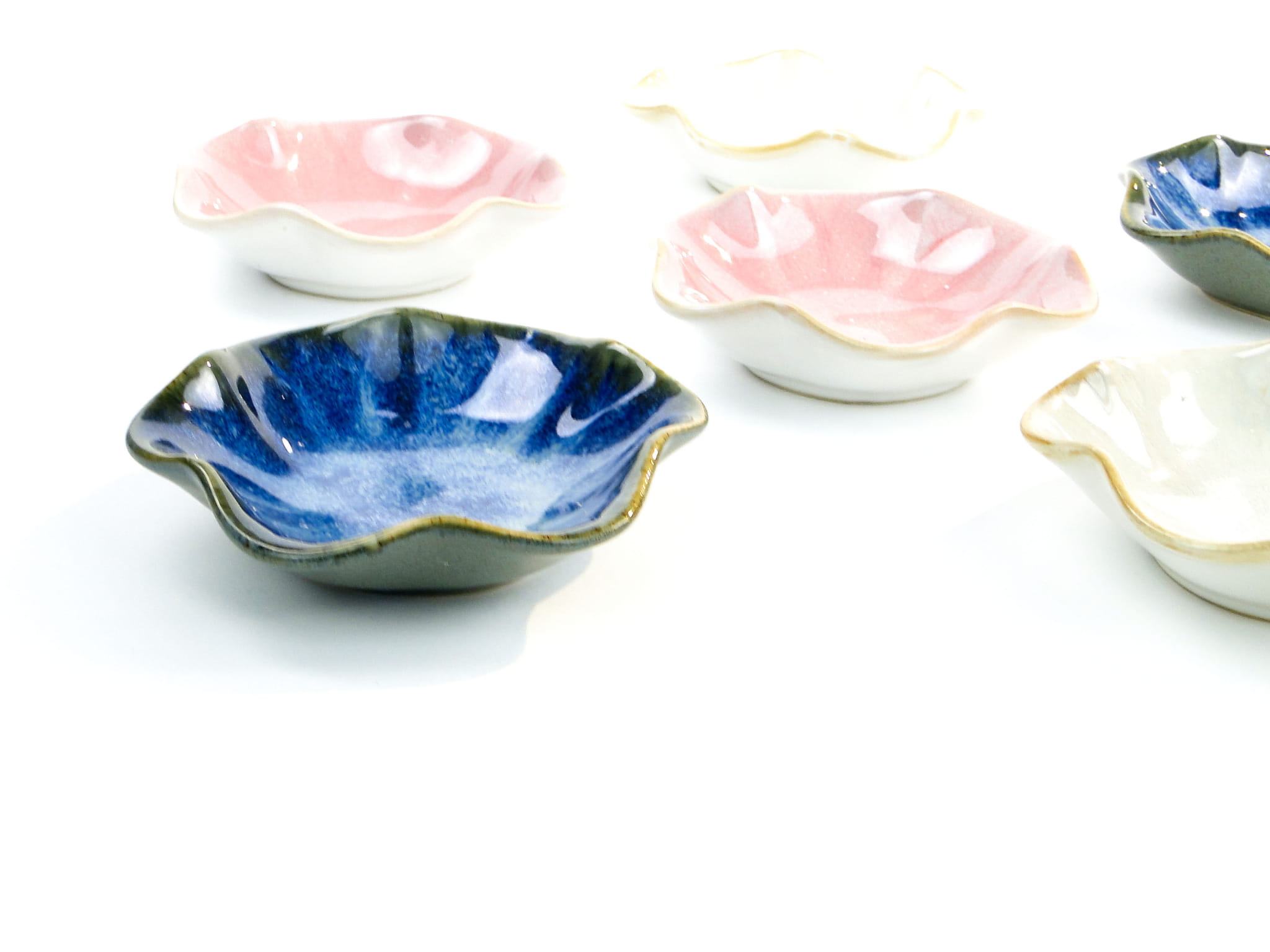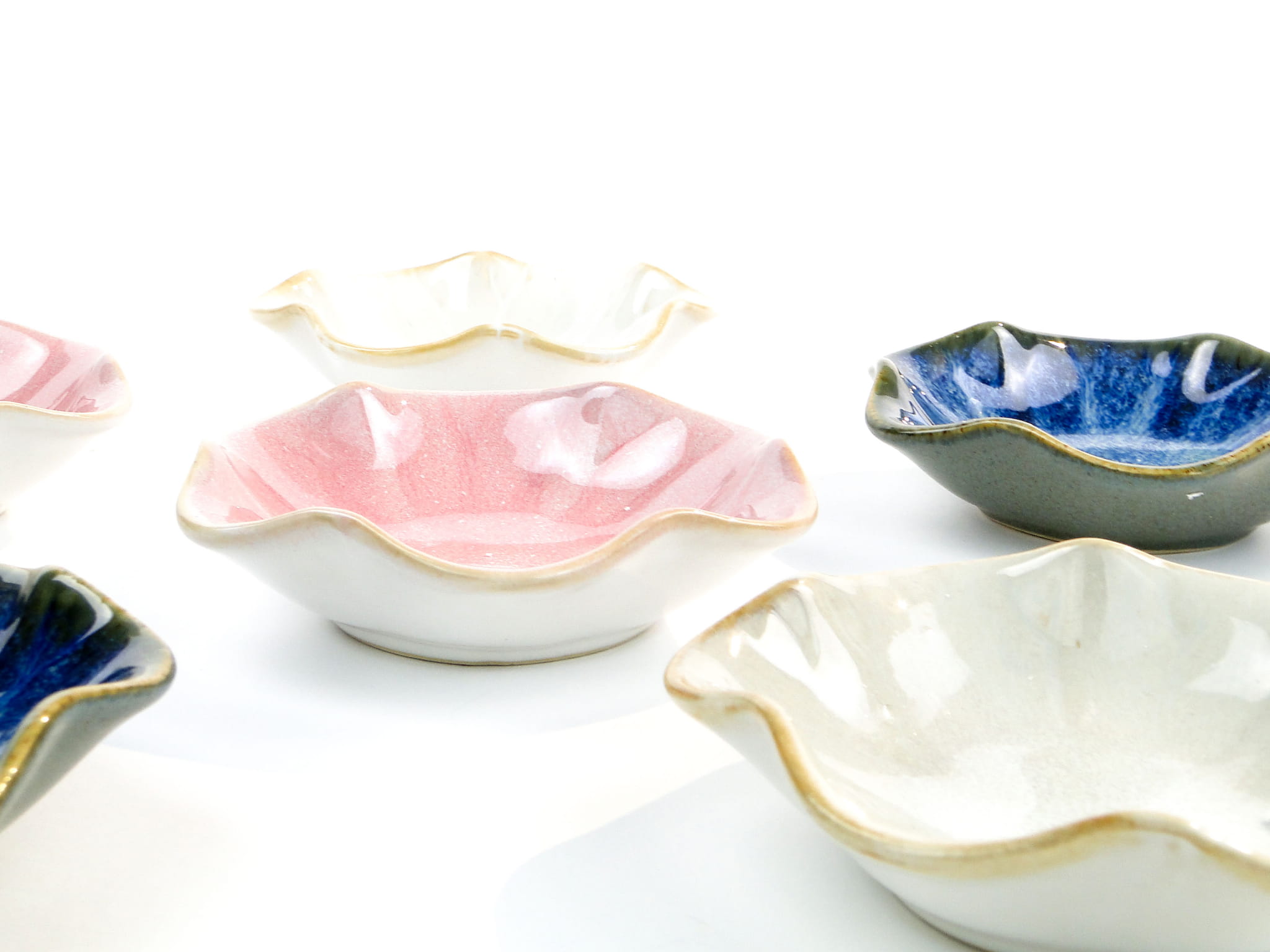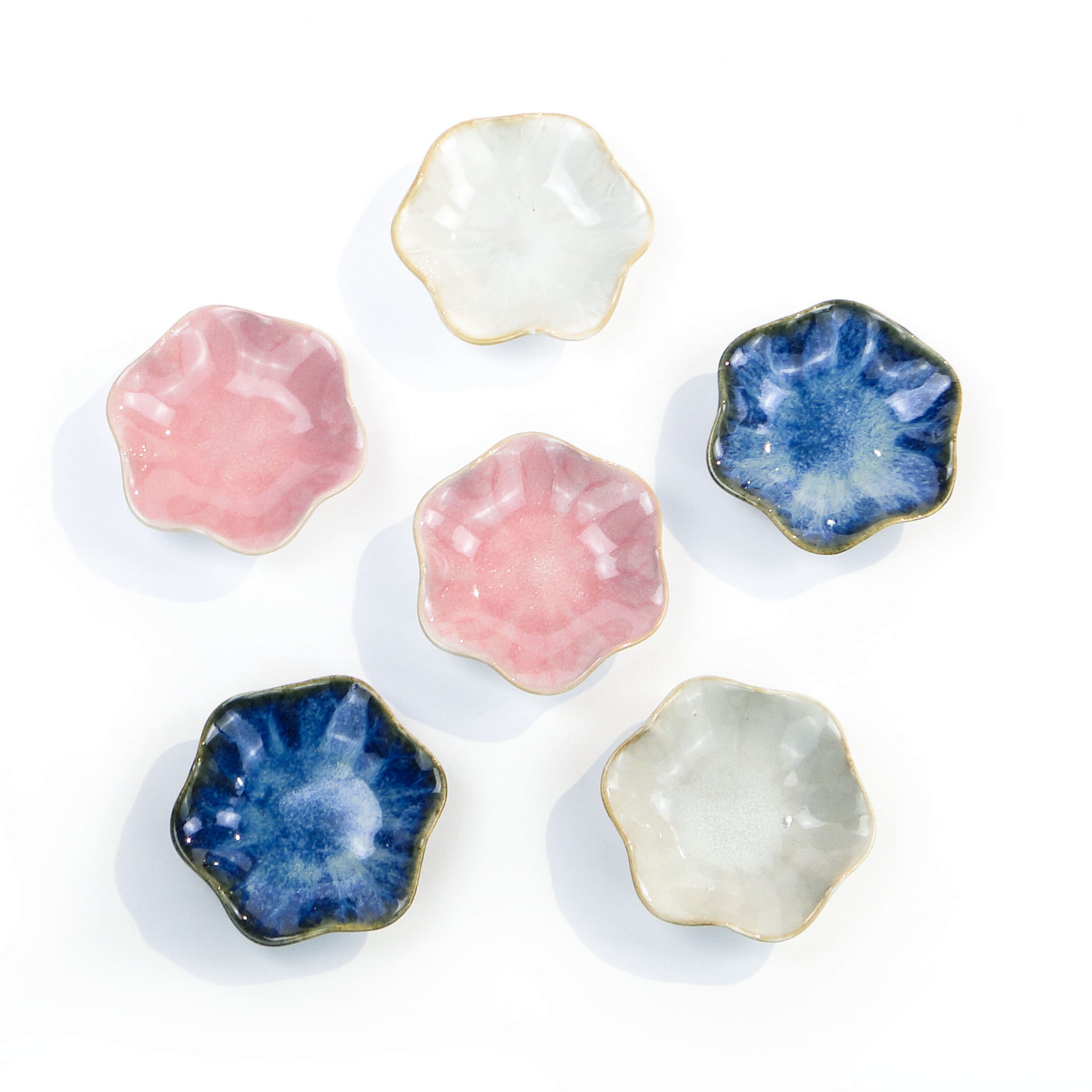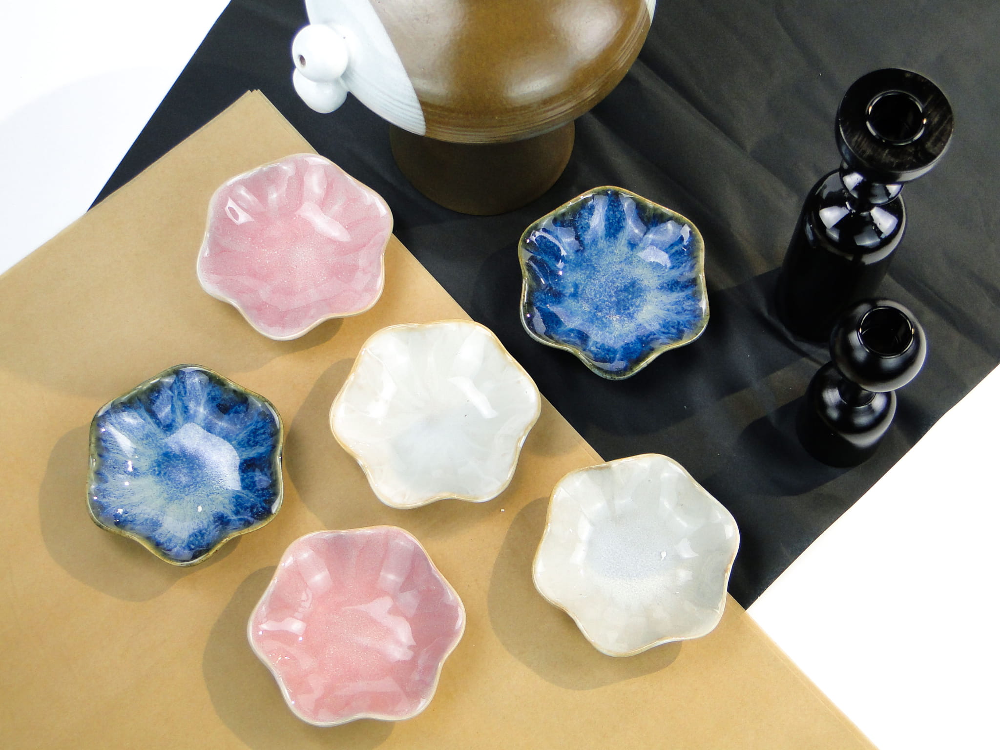 z ceramiki glazurowanej w kształcie kwiatów nenufarów.